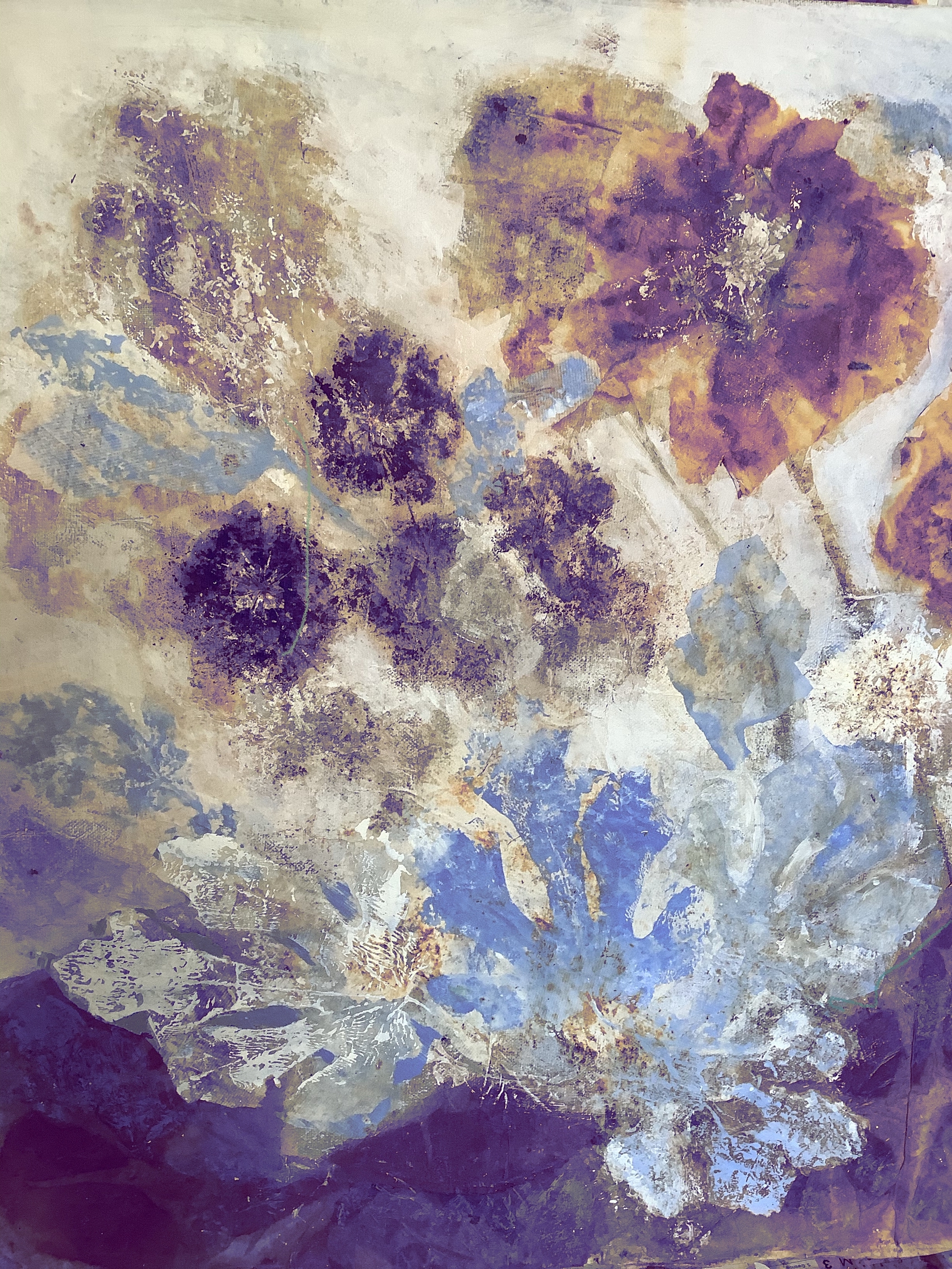 Le cyanotype est une exploration fascinante de la chimie et de la lumière. Deux solutions mélangées : citrate d’ammonium ferrique et ferricyanure de potassium. Le support est exposé au soleil.
