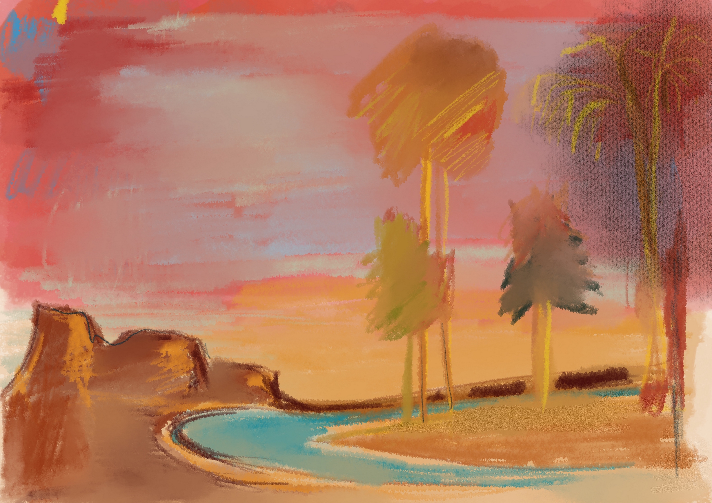 Je crée de l’art numérique à partir de mes propres dessins, puis je les retravaille avec le logiciel Procreate.